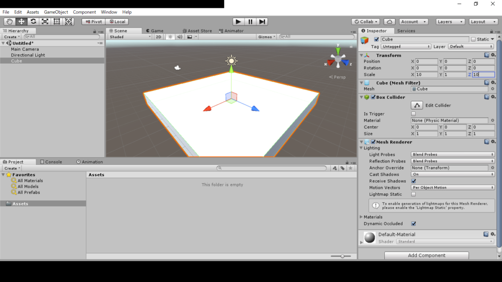 sacaleの値を変えて、大きくして、床を作ります。