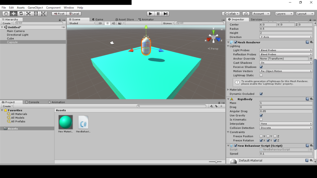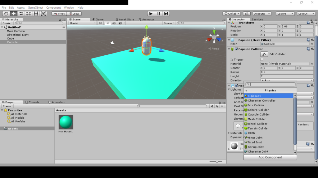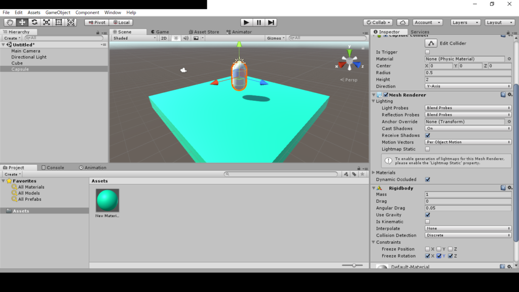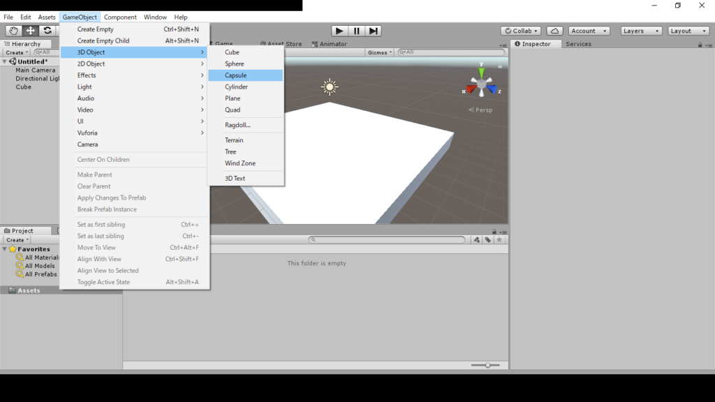 gameobjectの3d objectのcapsuleを選択します。