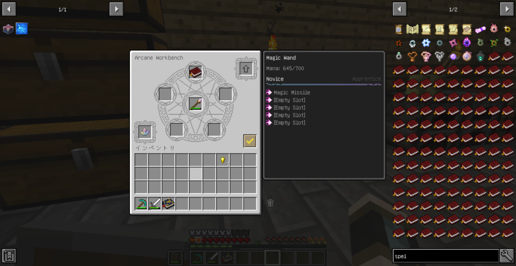 スペルブックとクリスタルを入れて、杖を入れて右下のチェックマークをクリックして、