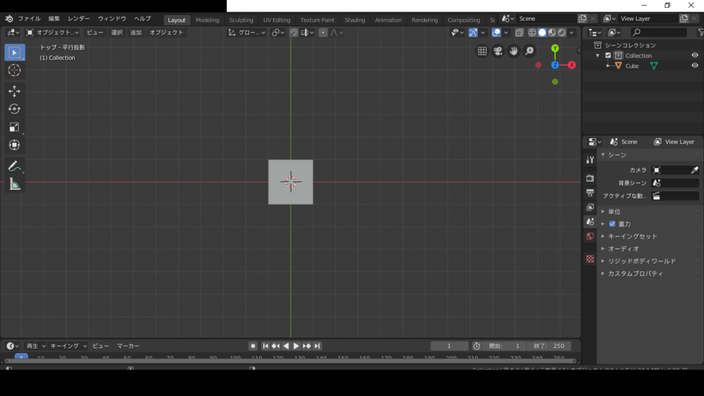 テンキーの7を押して、上から見下ろすようにします。