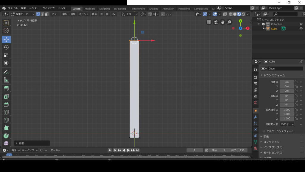 タブを押して、編集モードに入って、一つの面を選択して、伸ばします。